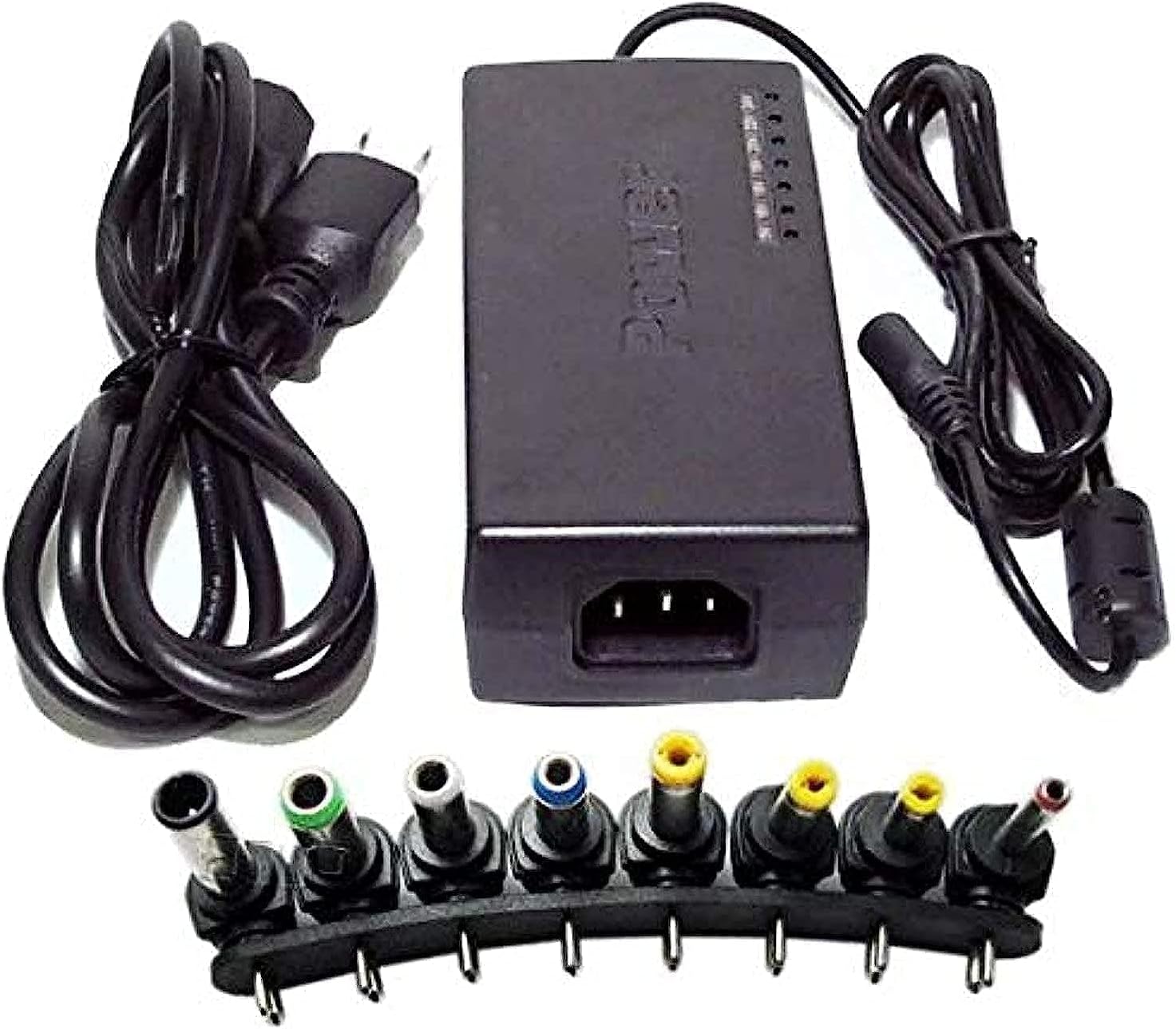 توافق 8 في 1 (أو أكثر): يأتي مع مجموعة من المقابس (Jacks) المختلفة المقاسات لتناسب مداخل الطاقة في معظم موديلات اللابتوب الشهيرة.