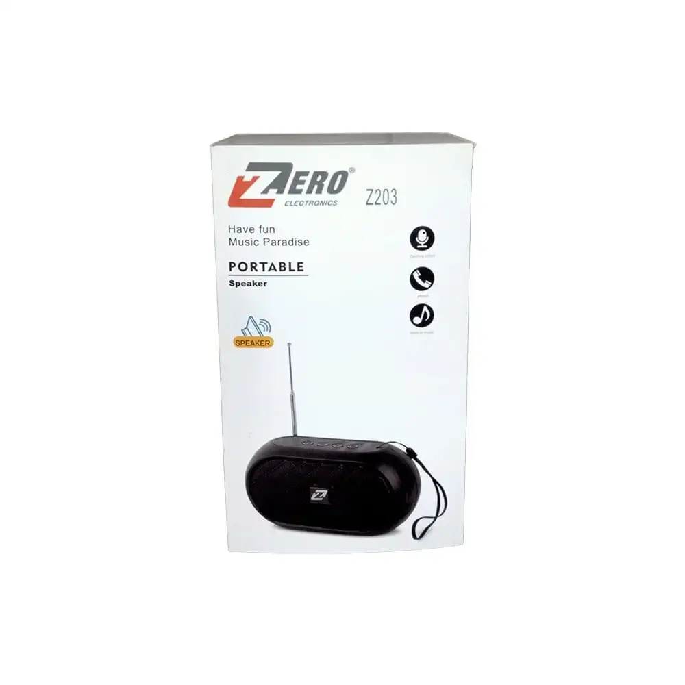 مكبر صوت لاسلكي محمول من سلسلة Zero الشهيرة، موديل Z203. يأتي بتصميم “ألترا بورتابل” (Ultra-Portable) خفيف الوزن وباللون الأسود الفخم. تم تصميم هذه السماعة لتقدم صوتاً متوازناً وواضحاً، وهي متوافقة تماماً مع جميع الهواتف الذكية والأجهزة اللوحية، مما يجعلها رفيقاً ممتازاً لمكتبك أو رحلاتك.